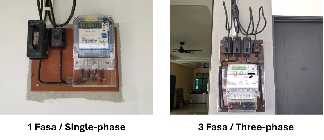 • Single-phase supply: 2 wires connected to your TNB meter.
